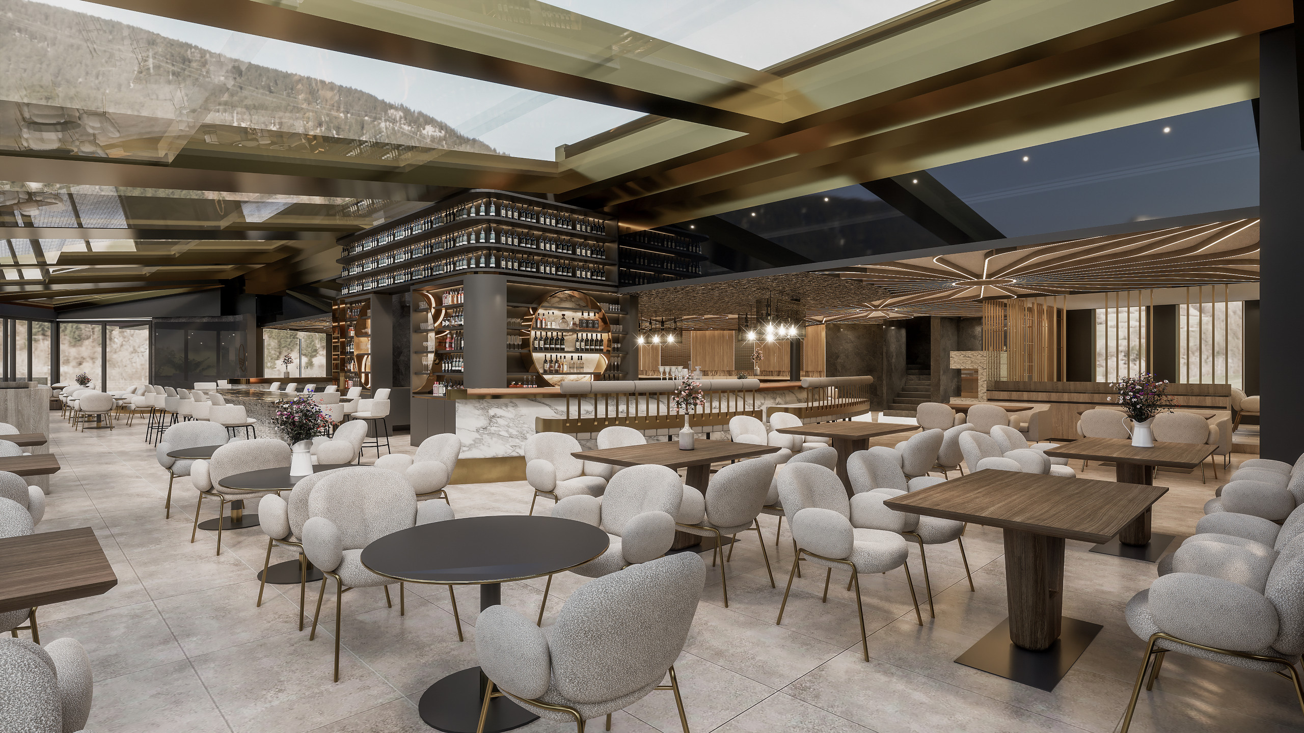 Gli ospiti che soggiornano nelle esclusive suite e negli chalet della Guesthouse V e P possono gustare la colazione e la cena nel nuovo ristorante panoramico.